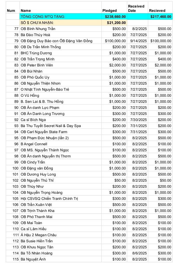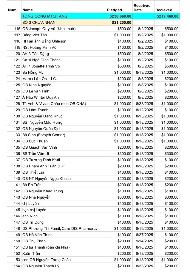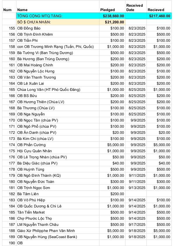 Công cuộc gây quỹ $600K đến nay chỉ còn $70K là tới đích và sẽ closing vào ngày 16-10-25.
